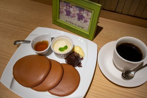 近くにカフェがあるかなっと探して偶然入った文明堂カフェ。 こんなのあるんですね… パンケーキをふたりでシェアしたのですが、 注文した時からおもしろい予感をびしびし感じてましたね! トッピングが色々ついてましたが、 あんことバターが間違いなかった…